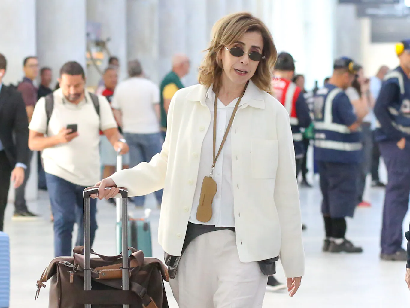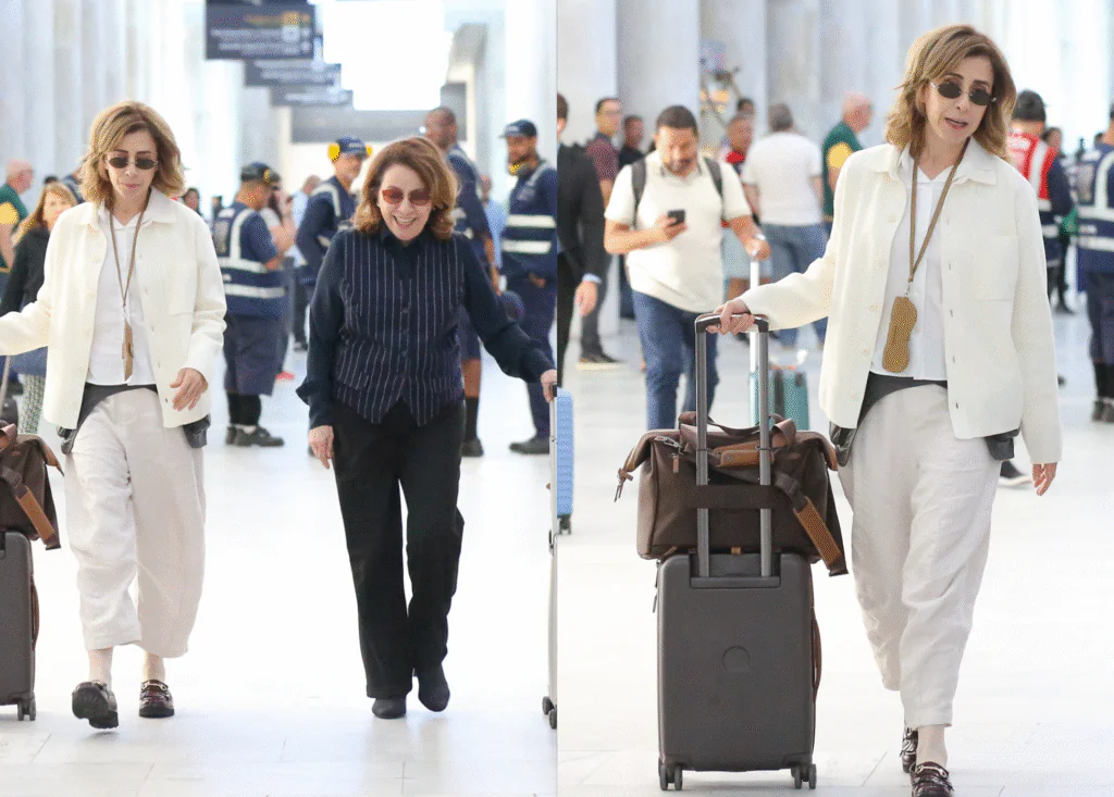 Mesmo sem grandes compromissos anunciados recentemente, a presença da atriz no Santos Dumont foi suficiente para movimentar o local e gerar comentários entre os que estavam por lá.