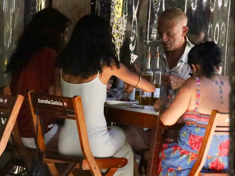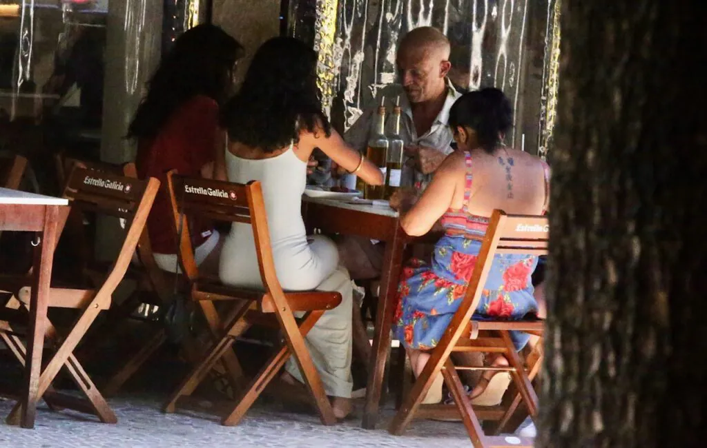 O registro mostra Vincent Cassel sentado à mesa com o grupo, conversando normalmente e aguardando o horário da refeição. Não houve qualquer tentativa de chamar atenção ou criar um clima diferente do habitual. O ator permaneceu no local como qualquer outro cliente, reforçando a naturalidade da situação. A presença da namorada e dos amigos contribuiu para um ambiente ainda mais casual, marcado por conversas e espera tranquila.